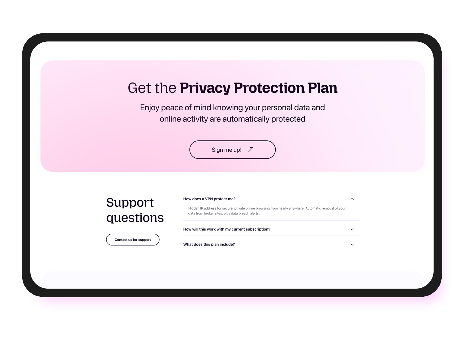 I used those insights to guide both messaging and structure. Instead of relying on broad privacy language, I focused on clarifying the value of the bundle, reinforcing trust, and addressing the kinds of concerns users were already expressing. This thinking shaped how the page framed the problem, introduced the offer, and built credibility through proof points, product value, and a more transparent subscription story.