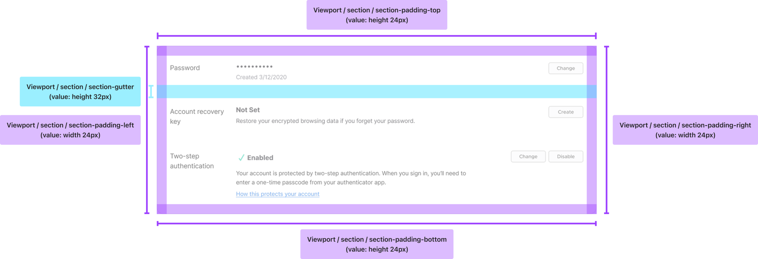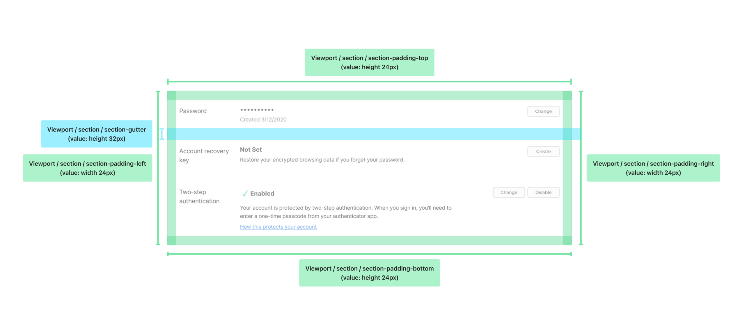 Another defining part of the system was that technical specs were built into the components. Rather than expecting designers to manually manage padding, margin, spacing, gutters, and other layout values, I structured components to work inside variable-driven auto-layout containers. Designer’s could simply be drag components into a frame, and they’d into place correctly.
