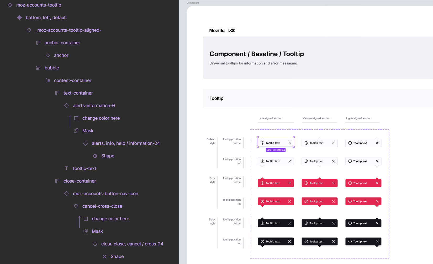 I build components with implementation structure in mind. Because I have a background in web development, I think carefully about how component layouts will be understood by engineers and try to organize them in ways that feel logical from a code and stylesheet perspective, such as using recognizable layer names to provide clearer structural context and behavior cues.