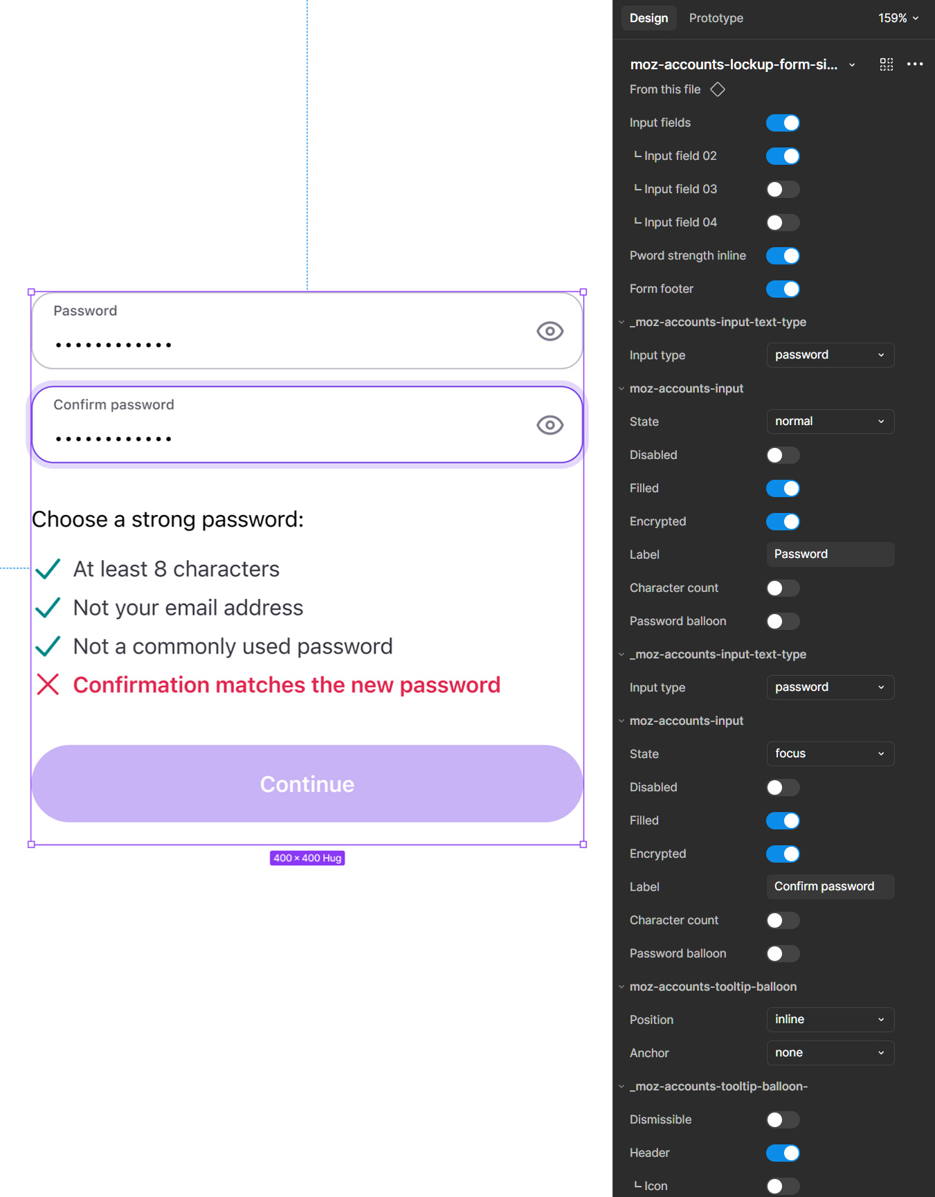 Once the initial library was created in Figma, I reviewed components for gaps in interaction quality, accessibility, consistency, and usability. This included identifying places where coded implementation, existing designs, and Firefox ecosystem expectations were out of sync. Building the initial “as-is” components gave me an in-depth view of every visual and interaction element, allowing me to discover and record the issues I found, in preparation for the redesign.