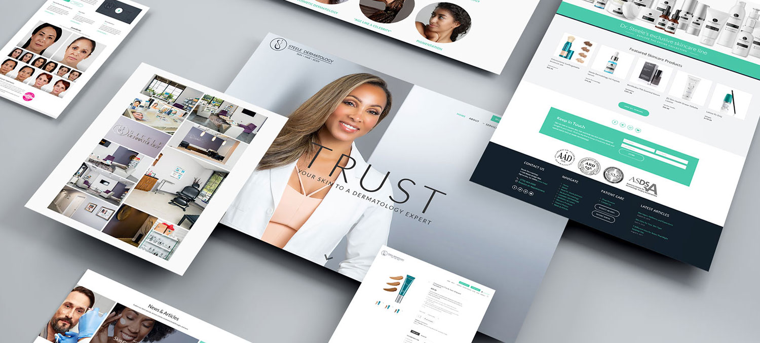 The website was a revamp with content architecture restructuring that condensed an overly-segmented sitemap down into fewer, more focused pages. The site is still rather large, but without compromising user experience in favor of SEO overkill. An online store was also integrated with a complete set of custom photorealistic images of Dr. Steele’s skincare line.