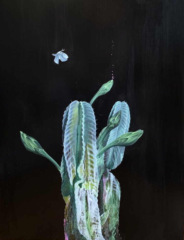In this new group of paintings, I’m baring my own desire for something oversaturated and stimulating, and hoping to honestly reflect the spinning feeling of experiencing nature through the outdoor and the indoor, the cultivated and the untamed, through wallpaper and hothouses, seed banks and preserves, as well as the truly and unknowably wild.